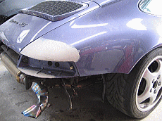 結局、右リアバンパーと右リアフェンダーの後端、右テールランプとセンターバンパー、それにチタンマフラーを破損してしまった。