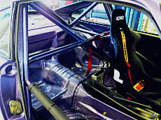 リクライニングしないバケットシートと、ジャングルジムのようなロールケージに阻まれて、ガラスまでたどり着くことが出来ない。
