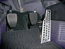 しかしそれでもまだ低く、足の大きな人や足首の柔らかい人?なら大丈夫だが、そうでない人はペダルとペダルの間にワッシャー等のスペーサーをはさんだり、ペダル裏のアクセルリンケージを長くしてペダルを高くする方法もある。
