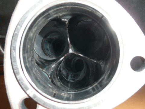 3方向からの排気が、スムースにぶつかるよう工夫されている。