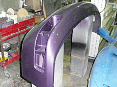 同じく剥離→樹脂用パテ→プライマー→サフェーサー→ペイント→クリアー仕上げとなる。