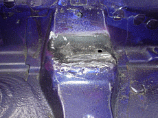 ところが、これがかなり適当な仕事で、ナットを重ねて高さを調節し、その回りを溶接でバチバチ!