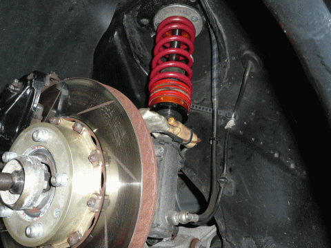 フロントはバネレート12Kg/mm自由長140mmに対して、8Kg/mm自由長170mm。