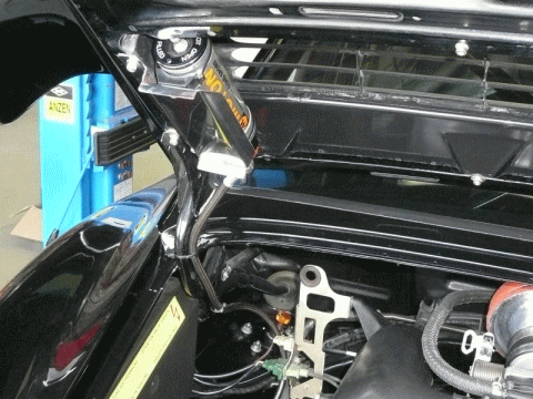 リザーバータンクはストラットタワーバーの左右にきれいに装着されている。