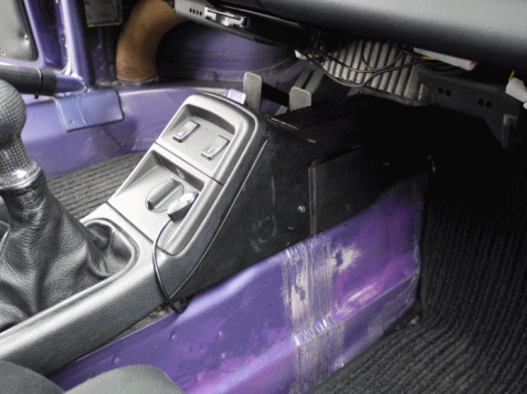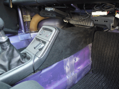 元々カーペットが貼られていた車両なので、センターコンソールにはそのカーペットが残ったままだった。