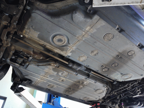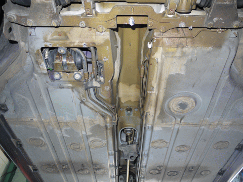 まずは車両をリフトに上げてセンタートンネルのアンダーカバーを外してからの作業となる。