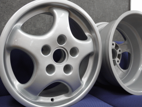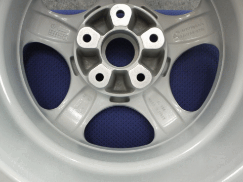 5年くらい前に、粉体塗装でレストアしてもらった純正カップホイールだが、その塗装面に無数の線キズが出てきた。