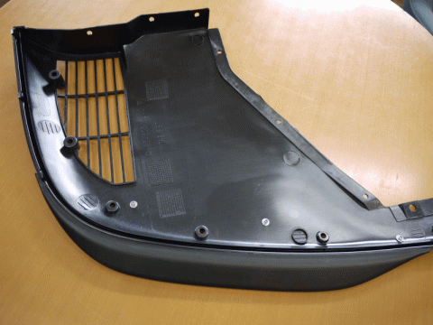 もともとはワイドボディ用のバンパーアンダーカバーにリベット留めされているパーツなので、ナローボディの964RS3.6に装着するにはリップスポイラー部のみを外して、リベットにて留め直さなければならない。