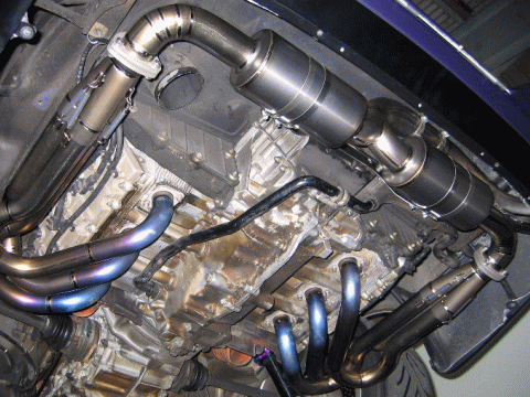 左右エキゾーストパイプは従来のまま流用し、サイレンサーのみをチタンで作製してもらった。