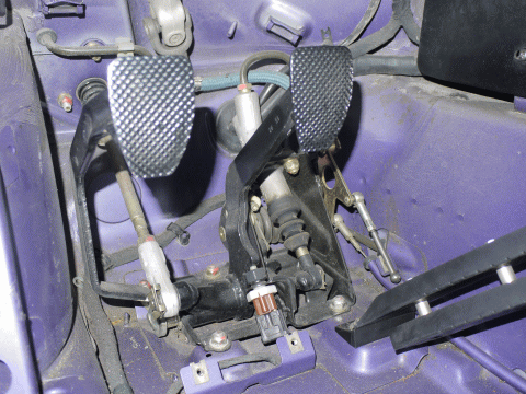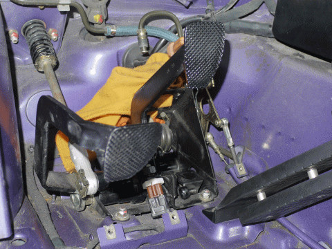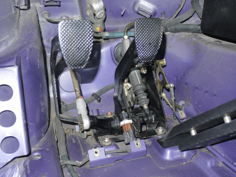 クラッチマスターシリンダーはクラッチペダルからリンクを介して、ブレーキペダルとアクセルペダルの間に取付けられている。