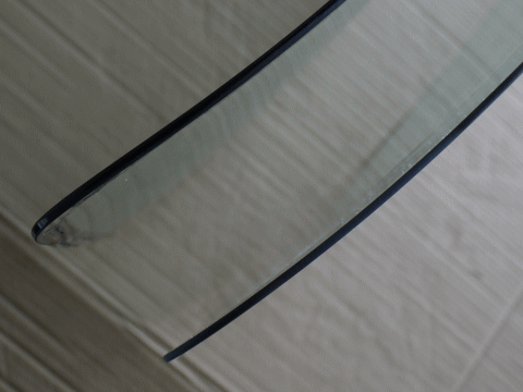 上が元々装着されていた4.2mm厚のガラスで重量は6.6Kg、下が今回入荷した3.0mm厚のガラスで重量は4.8Kgである。