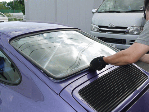 1ヶ月くらい前、お客さまから964のリアワイパーを外して、ワイパーの穴がないガラスへの交換を依頼された。