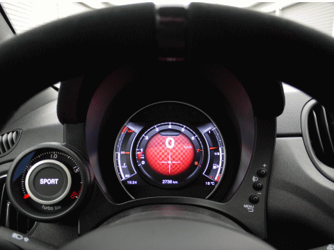アバルト595の場合、ノーマルモードではエンジン特性が燃費重視のプログラムになり、ABSやESCが早めに介入するのだが、スポーツモードではフルパワープログラムになり、ABSやESCの介入は遅くなるように設定されている。