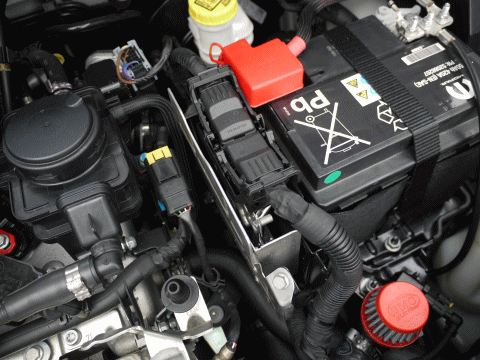 595のメインECUはエンジンのすぐ横、バッテリーケースと共締めされて装着されている。