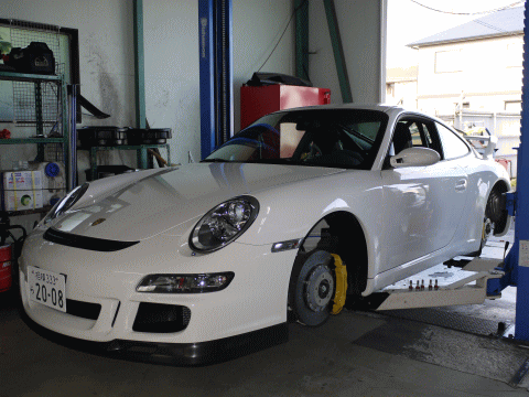 997GT3の名義変更が完了したため、リフトアップして各部点検を行なうことにした。