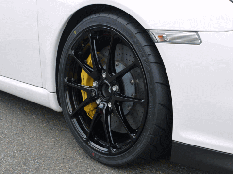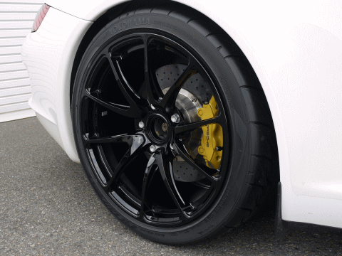 997GT3専用設計でフロント8.5J-19 インセット53、リア12.0J-19 インセット63である。