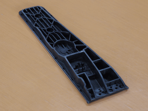 裏側は複雑なリブ構造で凸凹になっているため、上を低くし下に行くほど高くなるように加工した。