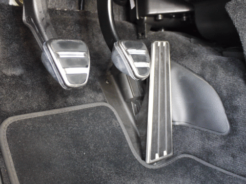 そのため、ブレーキペダルの上辺りを踏むようにすれば、簡単にアクセルペダルをあおることができるのだが、それではかかとをフロアから浮かせなければならないのである。