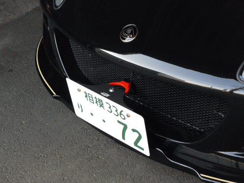 フロントはレーシング牽引フックにJAE-Racingのカーボンステーで取り付けた。