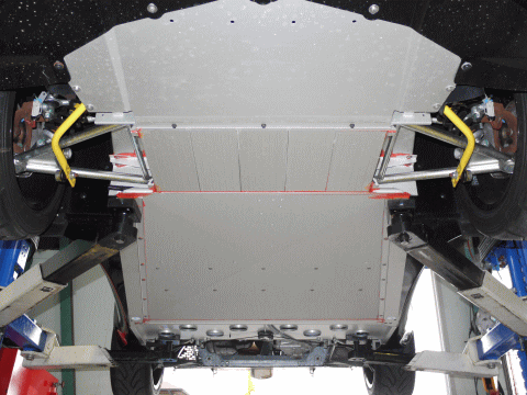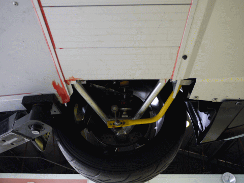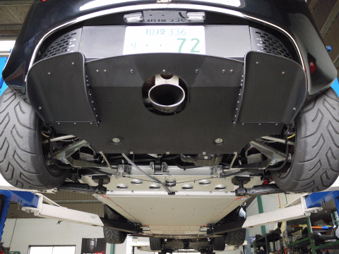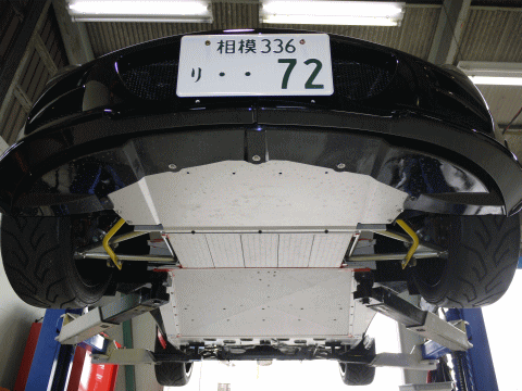 リアのジャッキアップポイントはディフューザーパネルを外すと現れる燃料タンクのアンダーガード後部になる。