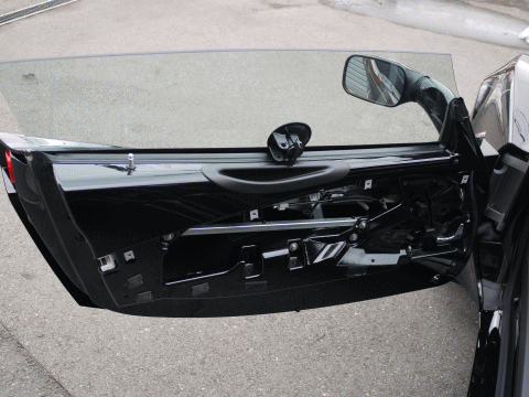 私のエキシージは、手動ではなくパワーウインドになっているのだが、左ドアのウインドを下げている途中で、ガタッと音がしてウインドが落ちてしまったのである。