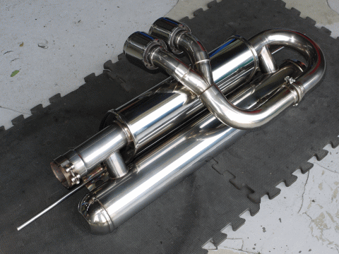 サイレンサー部分にレゾネーターという太い筒が装着されており、排気圧の干渉を利用してこもり音を除去するといった、まさに管楽器のようなマフラーである。