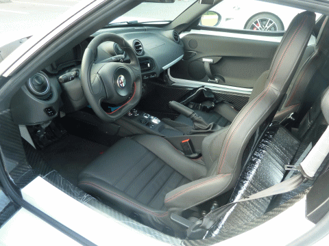 まずはカーボンファイバーのサイドシルを跨いでドライバーズシートに滑り込み、オーナーさんからレクチャーを受けながらキーを差し込んでエンジンを始動させる。