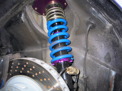 フロント、リア共にヘルパースプリングとピロアッパーマウントの組み合せそれに応じて減衰力を設定してもらった。