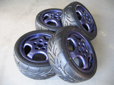 タイヤは、アドバンA048Mを使用、リアは255/40−17だが、フロントは215/45−17と225/45−17を走る条件によって、履き替えている。